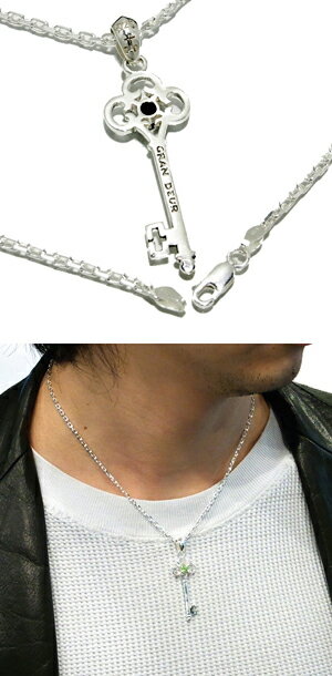 【GRAN DEUR】天然石付き キー(鍵)モチーフシルバーペンダントトップ(チェーン付)