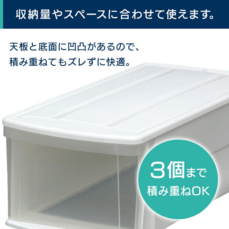 もちろん積み重ねて収納OK! 収納物や収納場所に合わせて1段ずつ重ねて使用することが出来る、 引き出しタイプの中身の見える衣類収納ケースです。