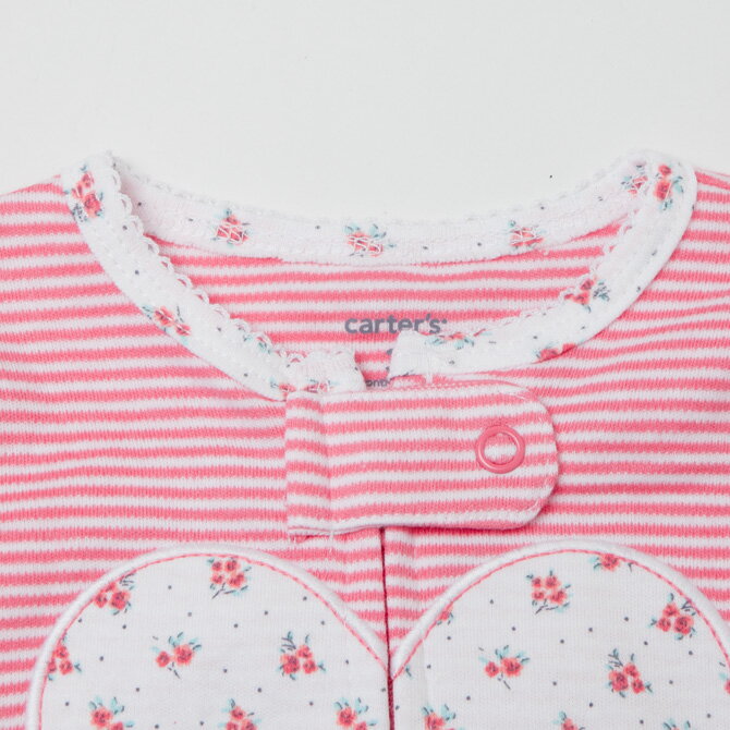 カーターズ【Carter's】(カーターズ カバーオール) 綿100% 足つきカバーオール☆ピンクホワイトボーダー×ハート 花柄【ラッピング不可】