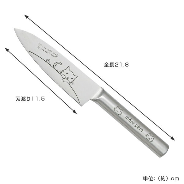 サイズ刃渡り:約 11.5cm全長:約 21.8×奥行3.1(刃幅最大ヶ所)×厚さ1.3(cm)重量:約62g内容量1本材質刀身:モリブデンステンレス鋼柄部:ステンレス生産国中国製商品区分包丁カテゴリから探す●刃部分はもちろん、柄部分にまでネコがデザインされた可愛いペティナイフです。