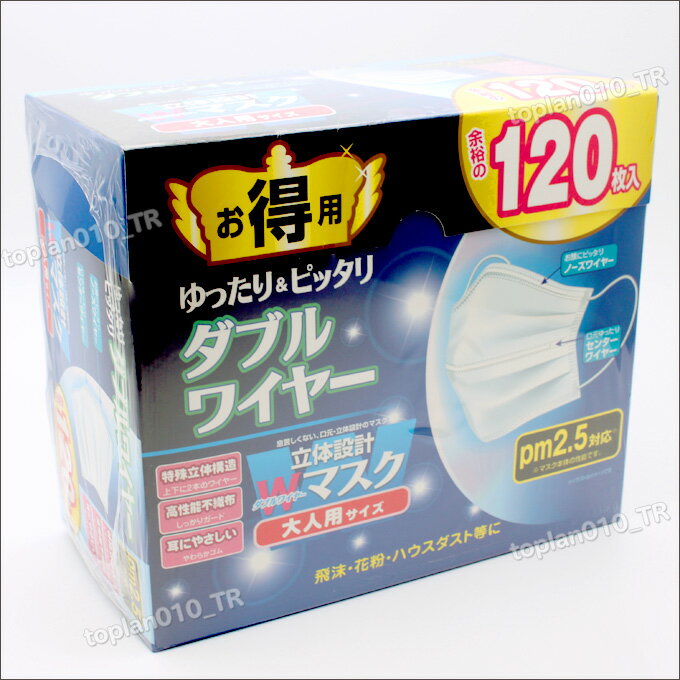 送料無料 立体設計Wワイヤーマスク 大人用サイズ 120枚入【TO-PLAN 東京企画販売 トプラン】
